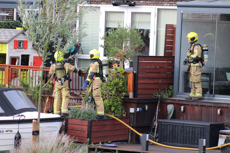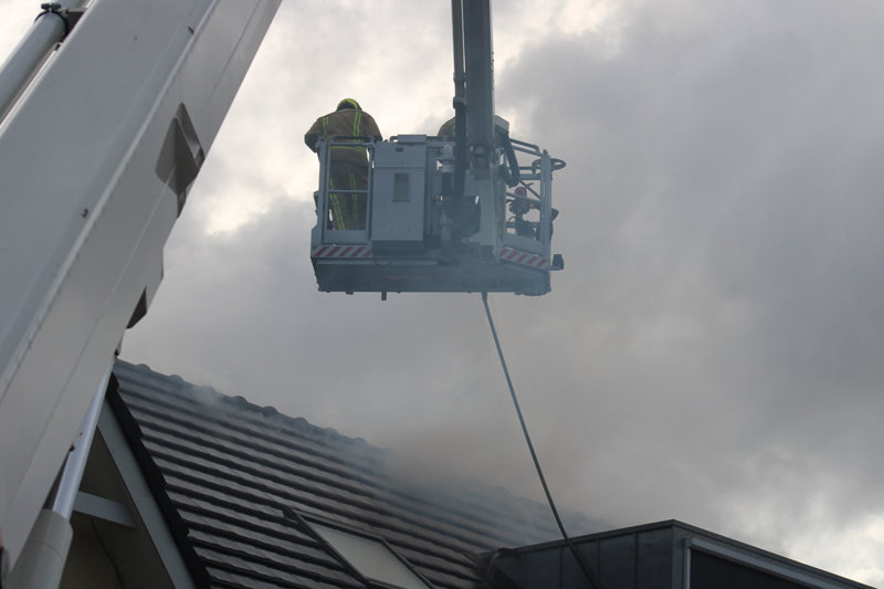 De brandweer is nog bezig met het blussen van de brand. De brand zit mogelijk in het dak. De schade aan het dak is flink.