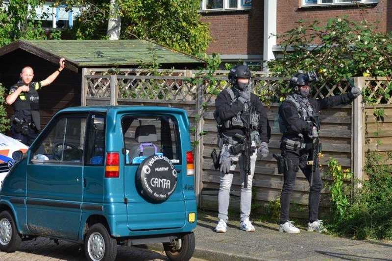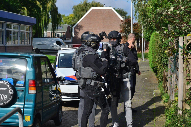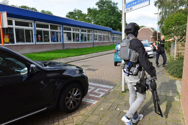 Meerdere politie-eenheden met kogelwerende vesten en ook een zwaarbewapend arrestatieteam van de DSI kwamen ter plaatse. Een deel van de omgeving werd direct afgezet.