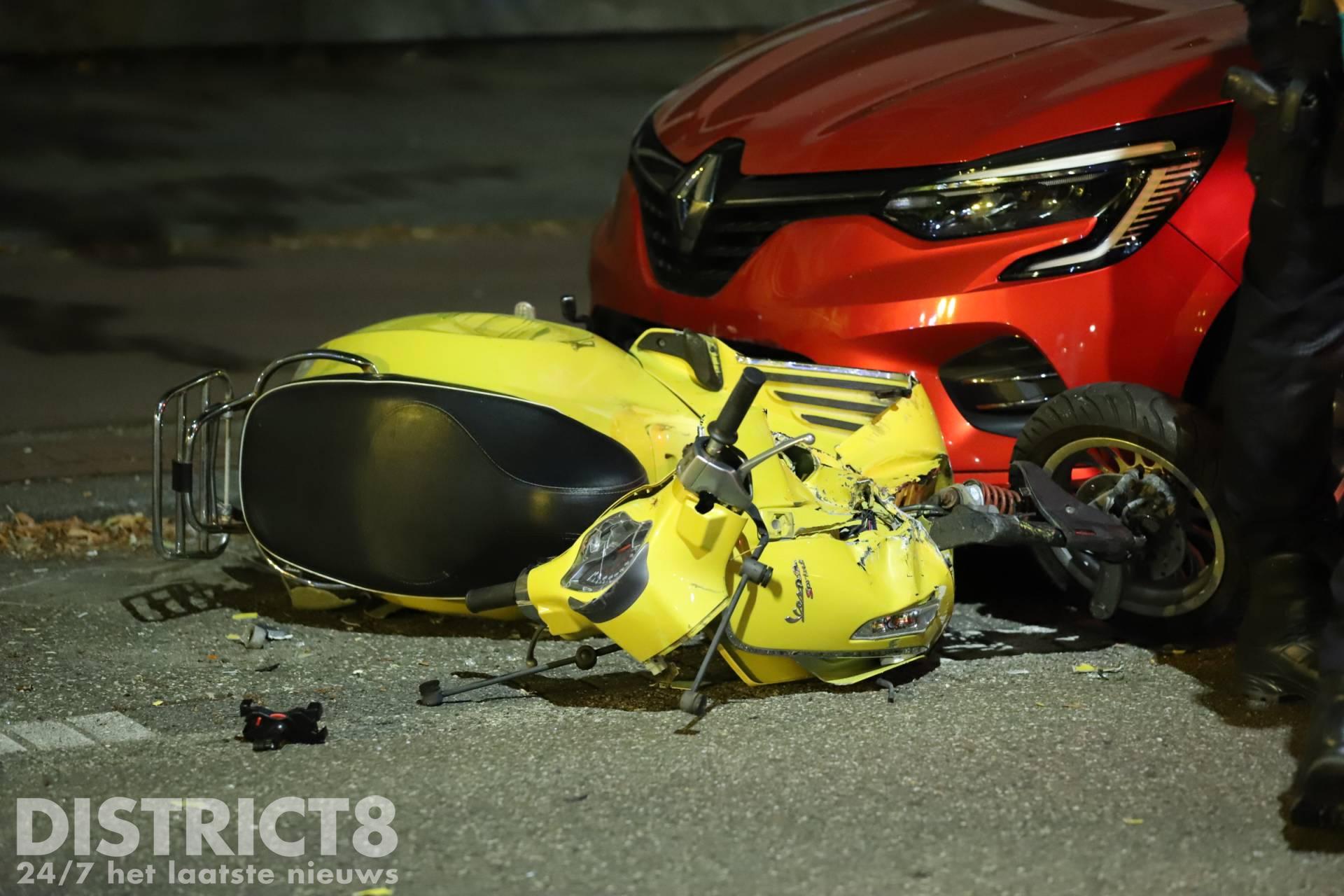 De twee raakten niet gewond, wel raakte de scooter beschadigd. De politie heeft de opzittenden gecontroleerd.