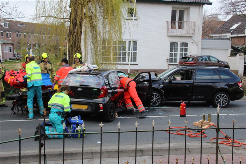 Twee auto’s kwamen iets na vijf uur frontaal in botsing. Door de klap kwam één van de bestuurders bekneld te zitten. De brandweer heeft de deur van dit voertuig verwijderd om bij het slachtoffer te komen. Dit slachtoffer is met zwaar letsel naar het HMC Westeinde ziekenhuis vervoerd. De arts van een opgeroepen traumahelikopter is meegereden. De andere bestuurder is na het ongeluk tegen een hekje gaan zitten.