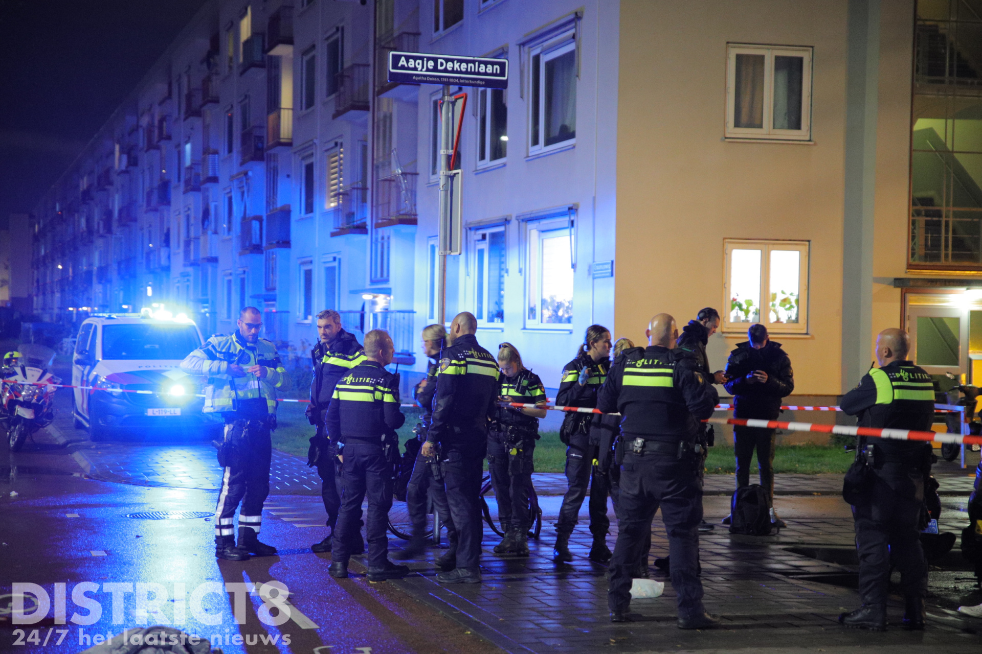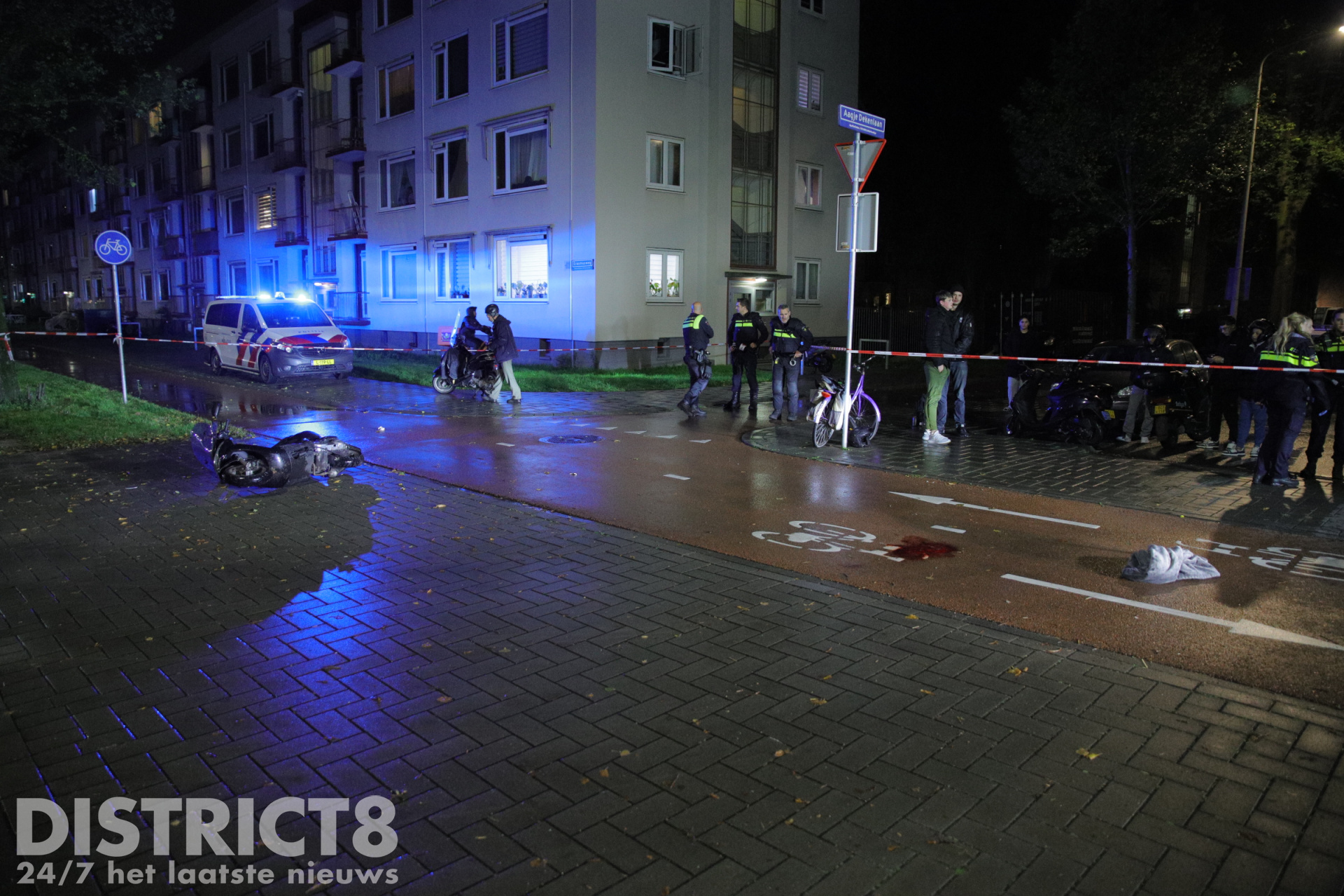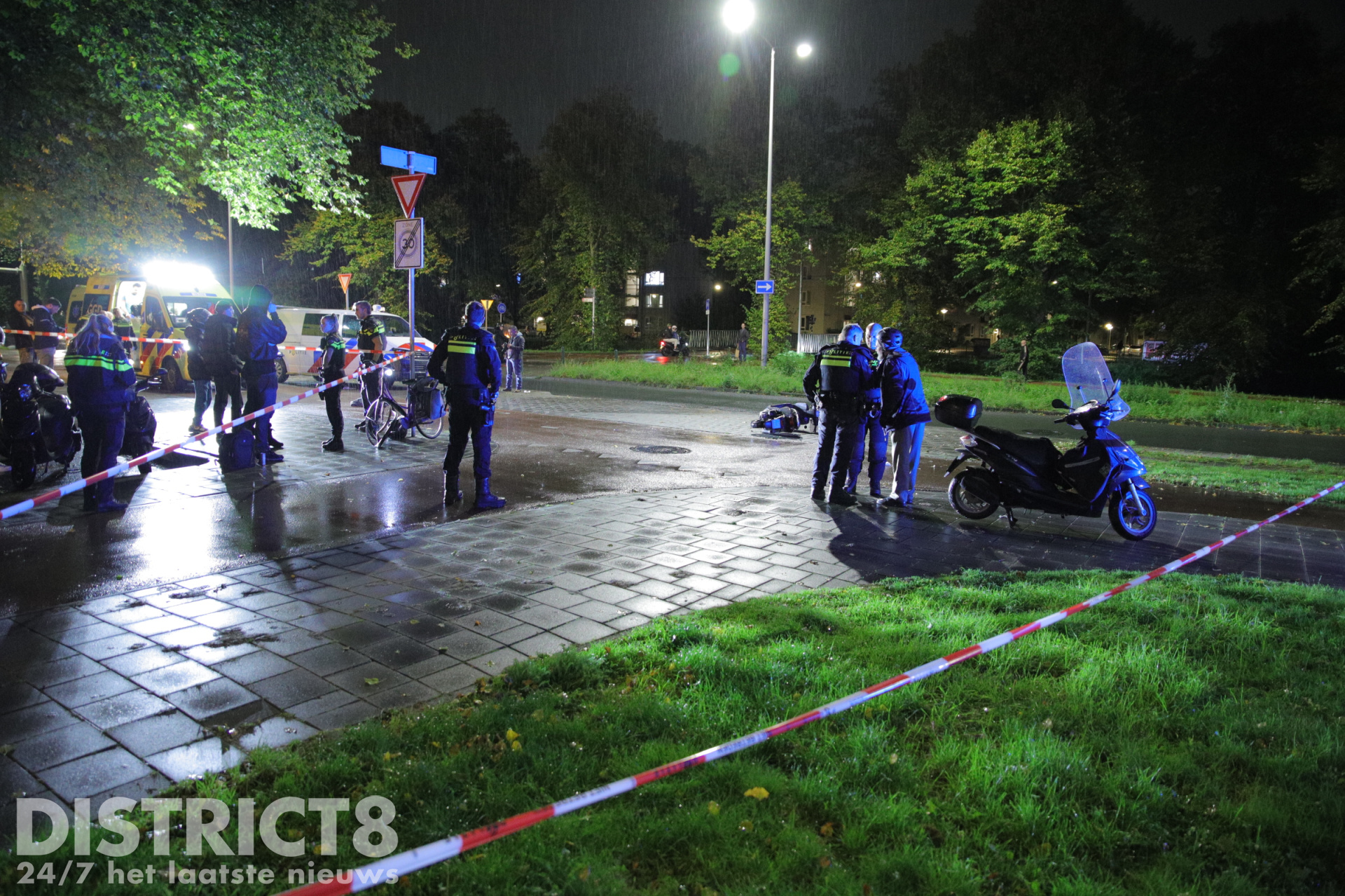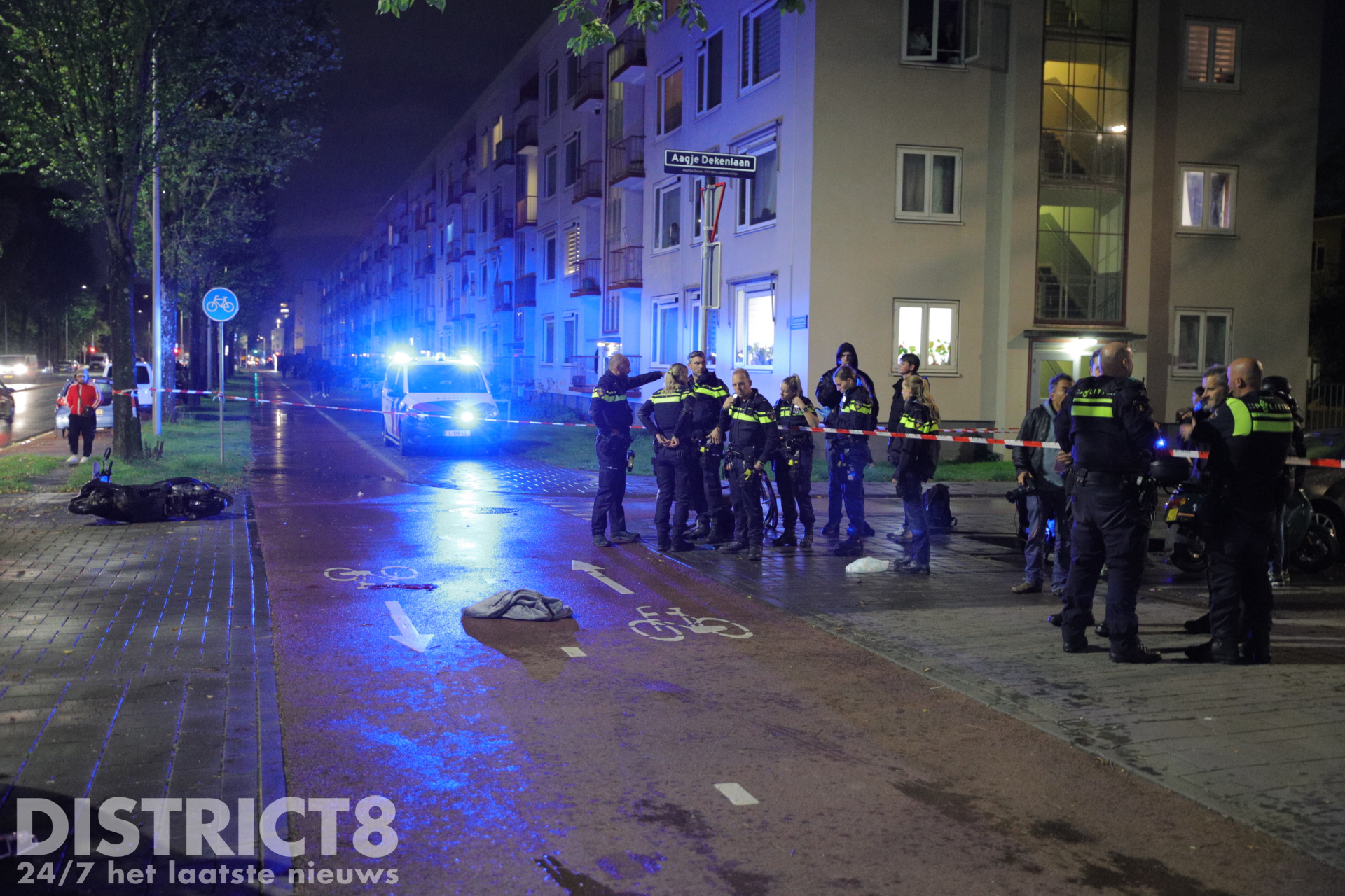 Het fietspad en Aagje Dekenlaan zijn afgesloten. Op het fietspad ligt een flinke plas bloed.