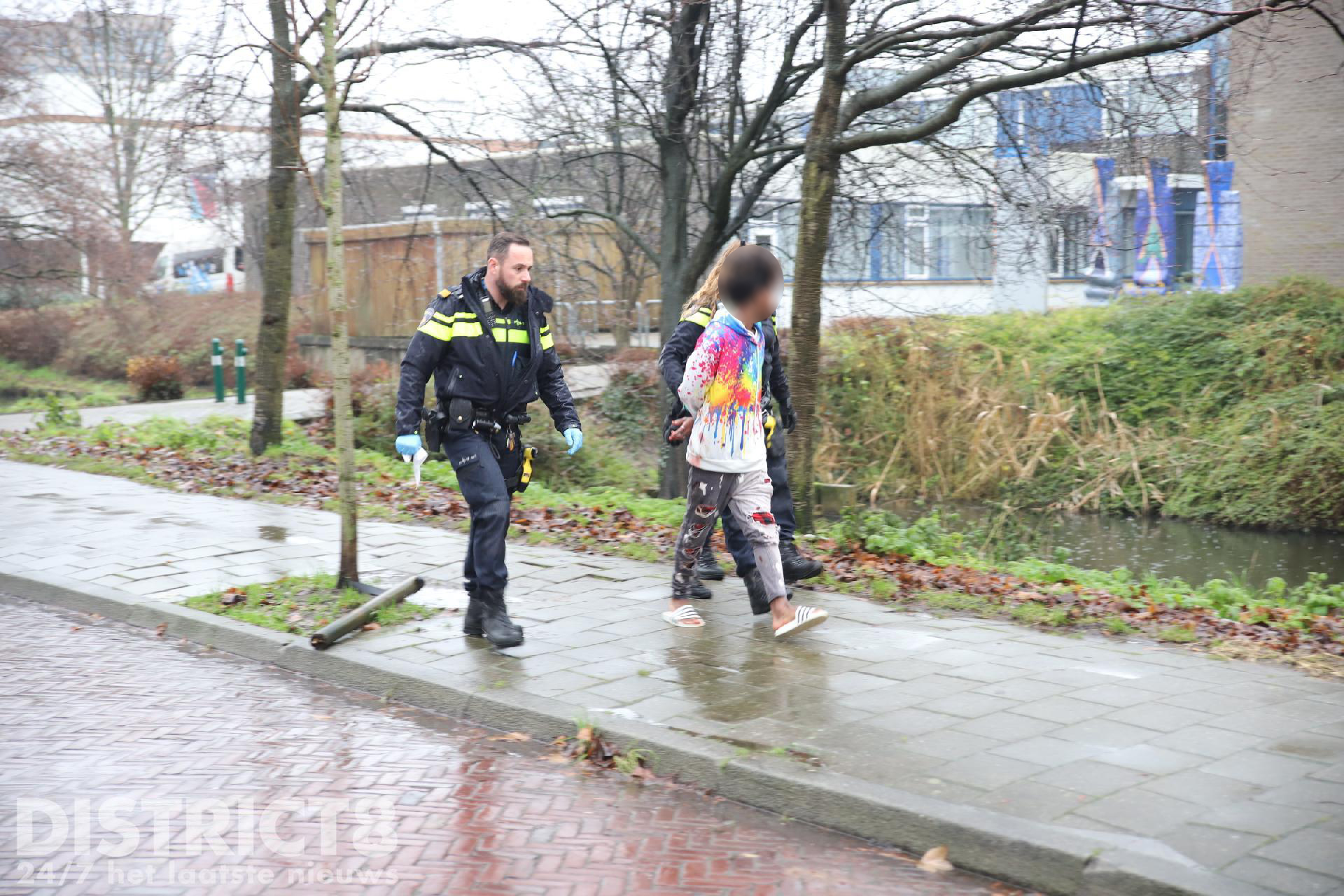 De politie kon bij aankomst al snel een verdachte aanhouden. Deze is te voet overgebracht naar het politiebureau.