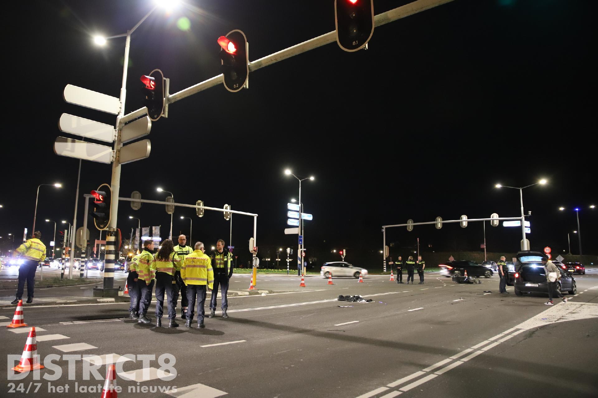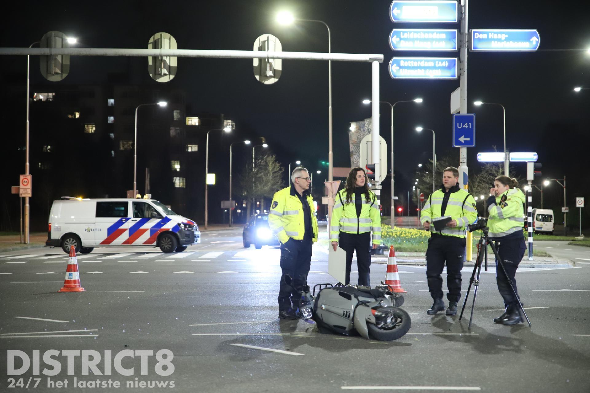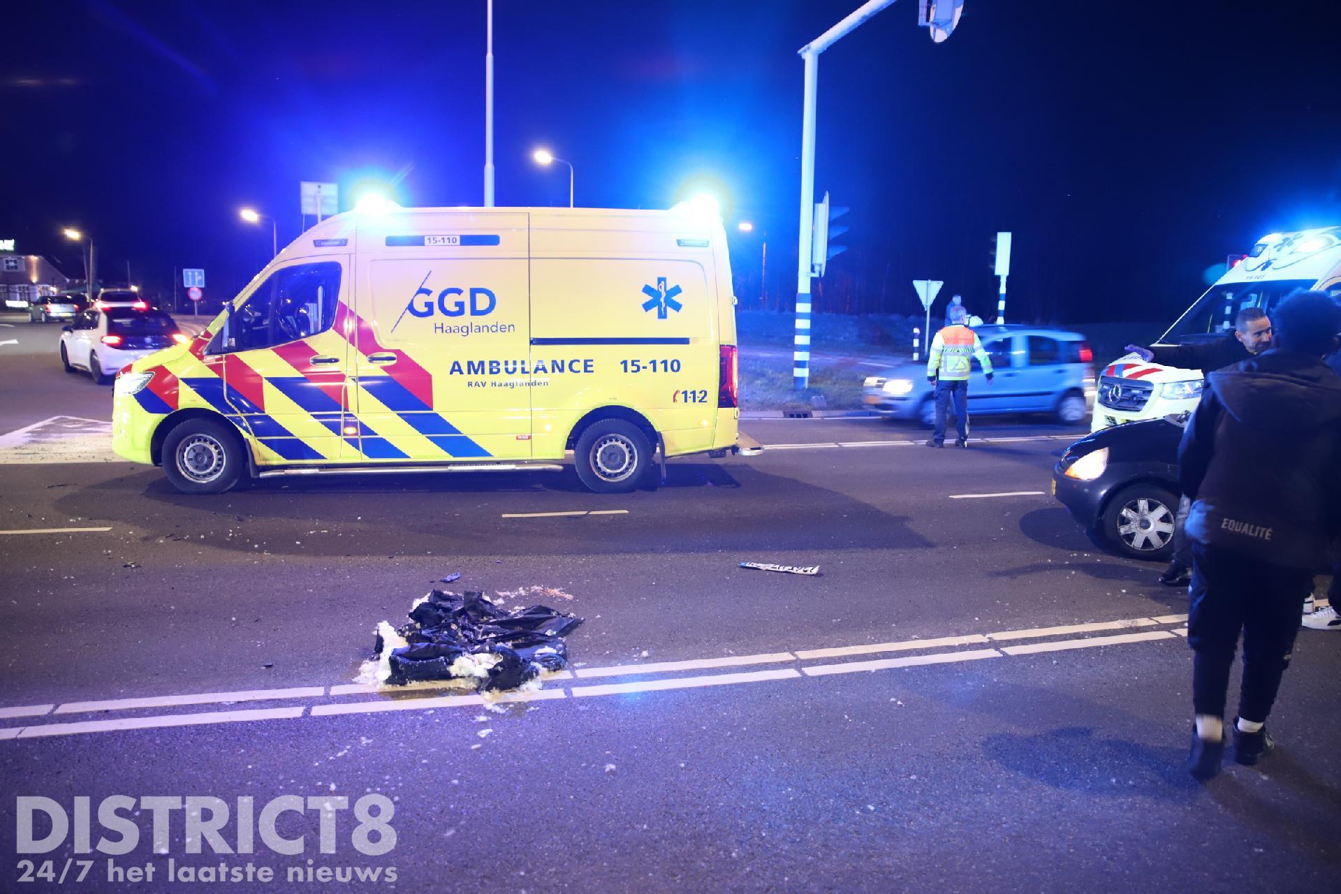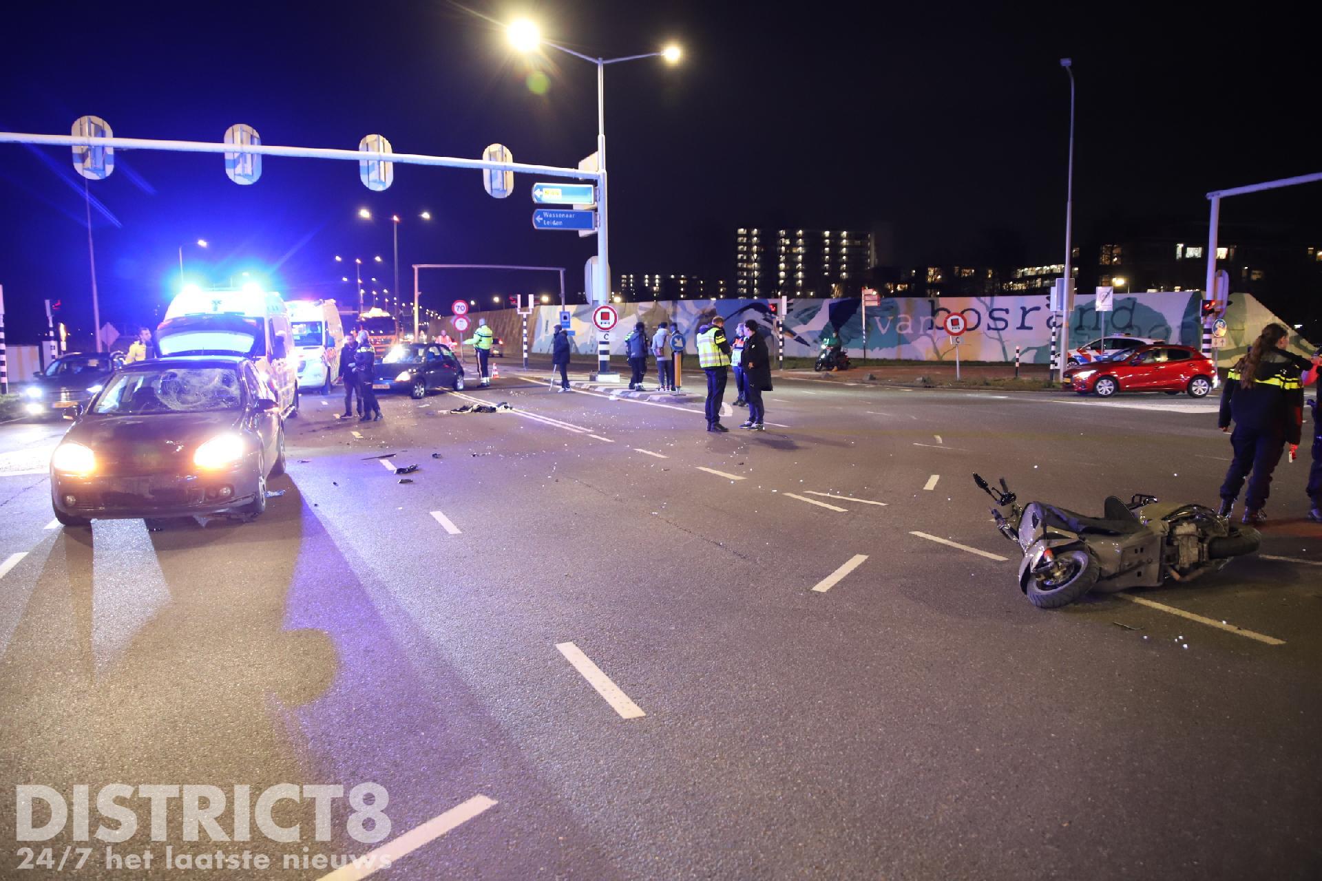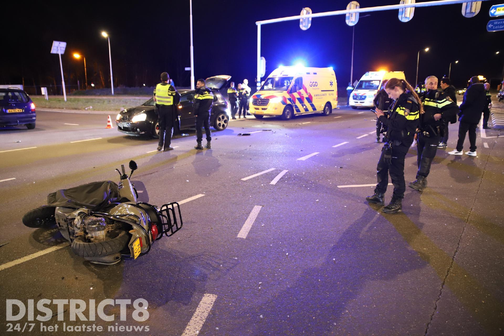 Wassenaar – Bij een aanrijding tussen een scooter en een auto op de N14 ter hoogte van de Zijdeweg in Wassenaar is de bijrijder van een scooter ernstig gewond geraakt. Omstreeks 19:25 ging het mis, volgens getuigen kwam de scooter door rood licht de kruising over en werd hierbij geschept door een auto. De bijrijder kwam hierbij op straat terecht en raakte zwaargewond.