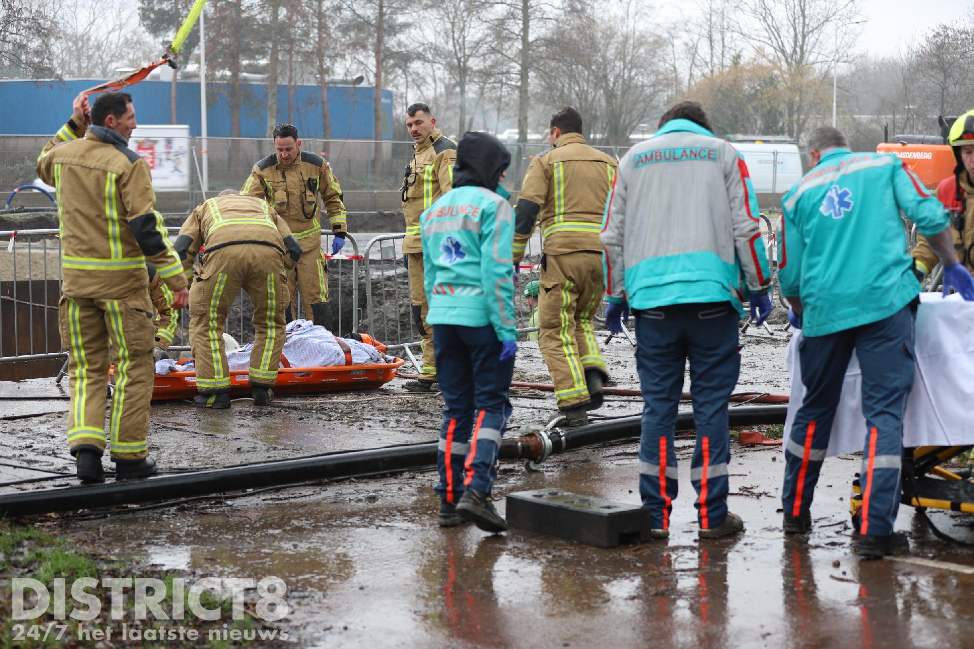 Het ambulancepersoneel is langere tijd bezig geweest met de stabilisatie van het slachtoffer. Uiteindelijk is het slachtoffer met een hoogwerker uit de kuil gehaald en naar de ambulance gebracht, hierna is het slachtoffer met spoed (A1) vervoerd naar het ziekenhuis.