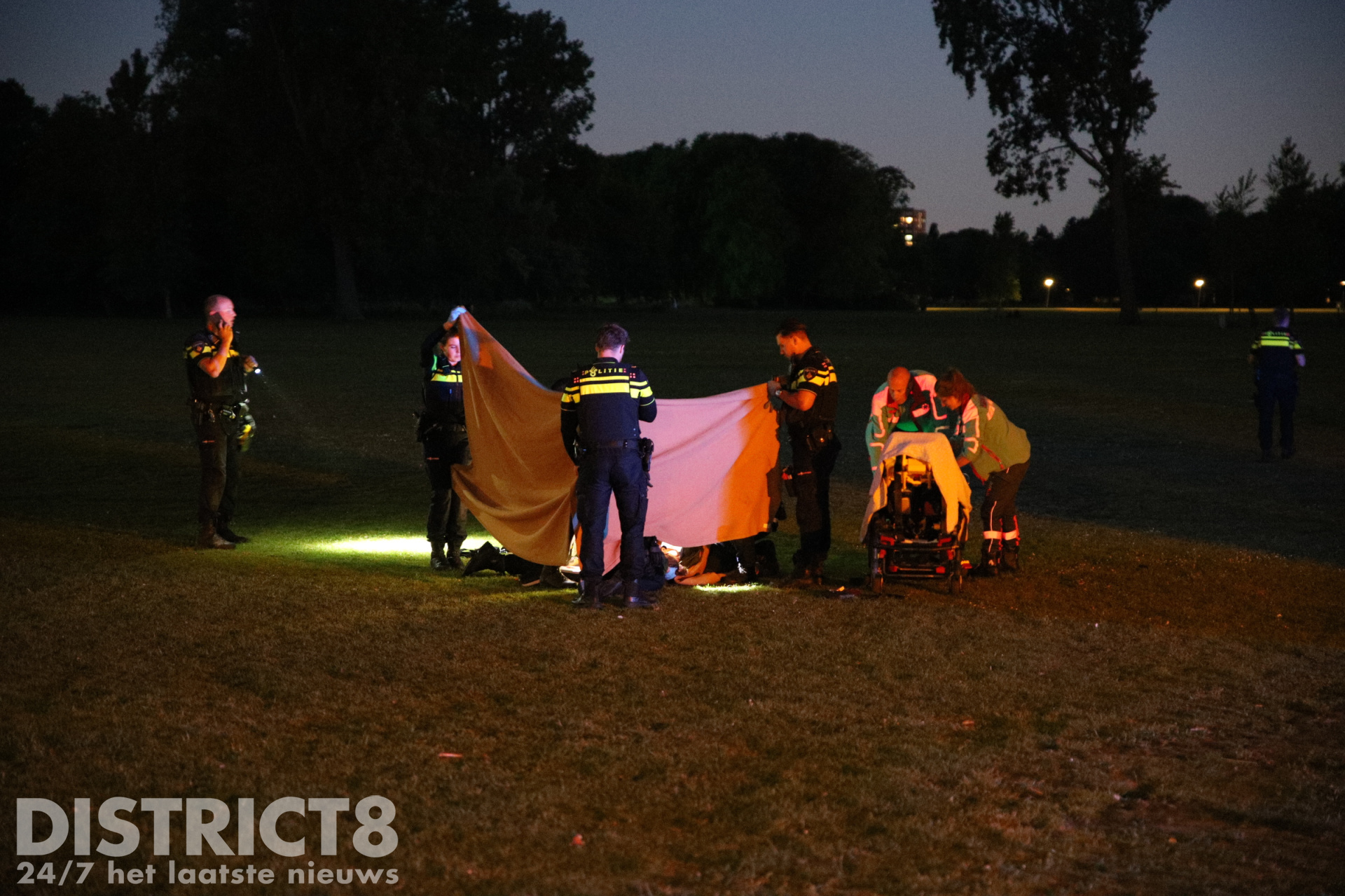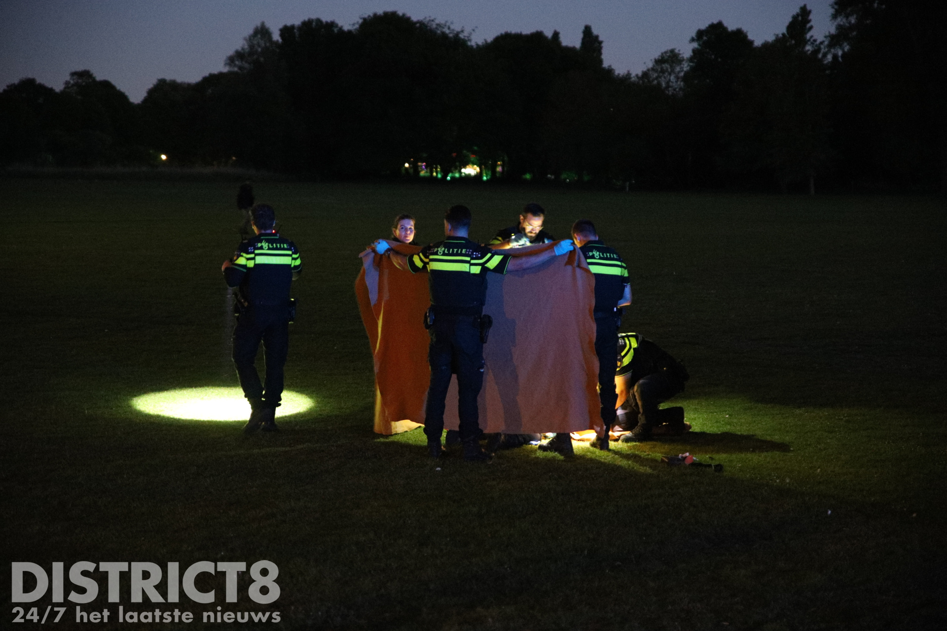Het slachtoffer is gereanimeerd, op een brancard in de ambulance gelegd en onder politiebegeleiding met spoed overgebracht naar een ziekenhuis. De politie is een onderzoek gestart en in de omgeving wordt gezocht naar een eventuele verdachte(n).