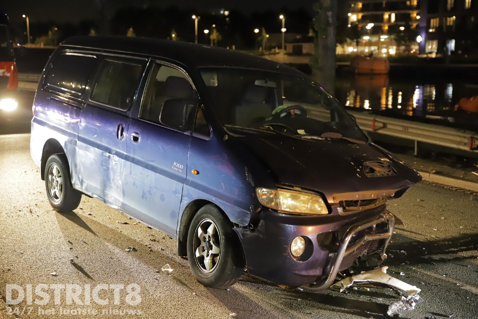 De bestuurder van het busje is aangehouden na het doen van een blaastest. Hij raakte niet gewond.