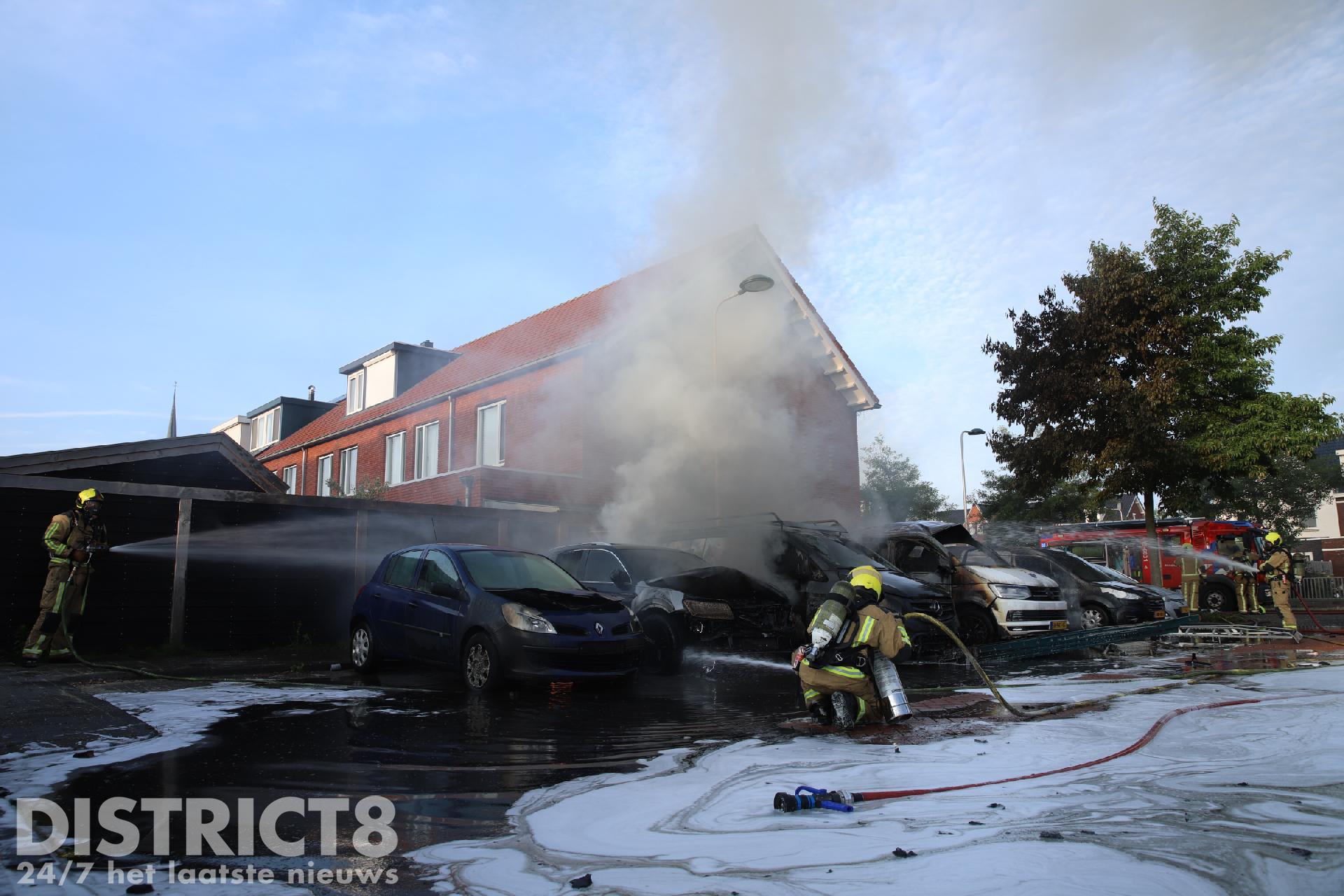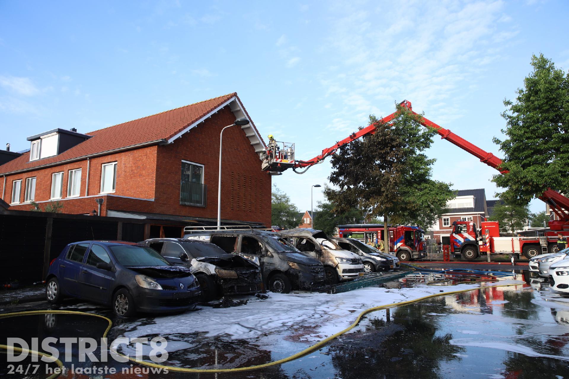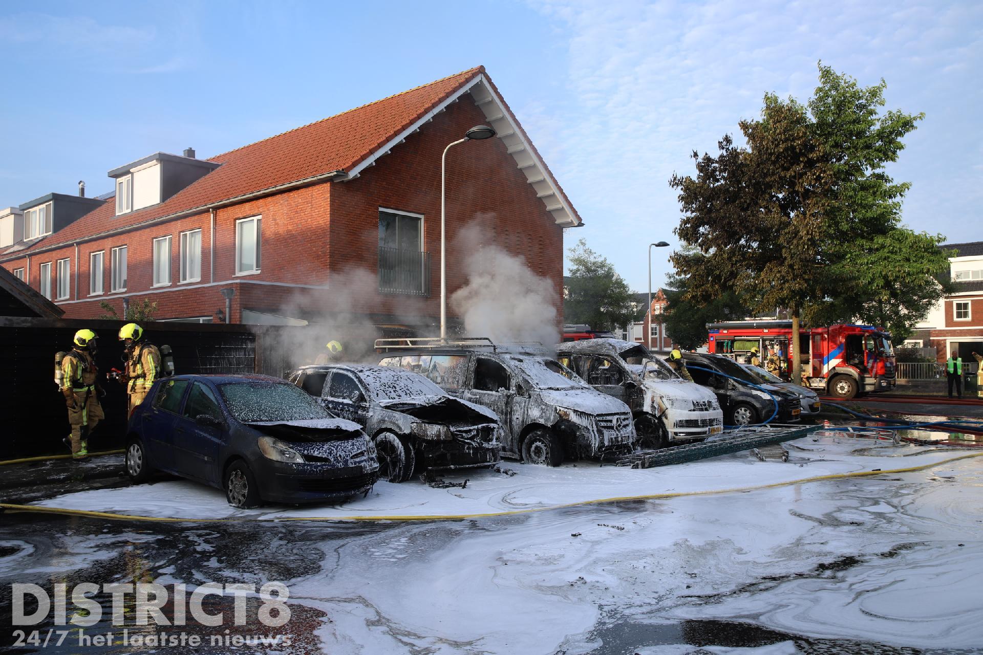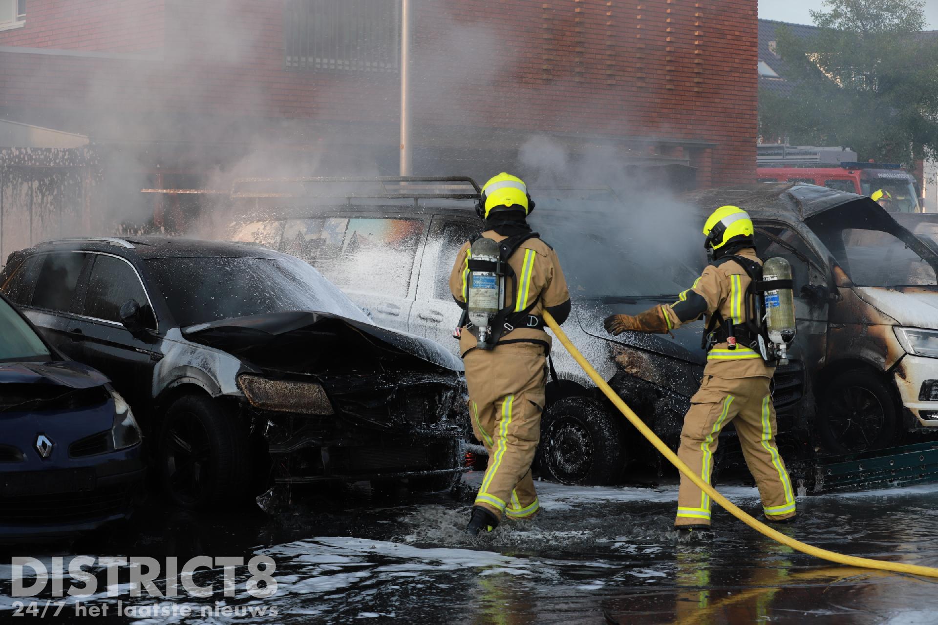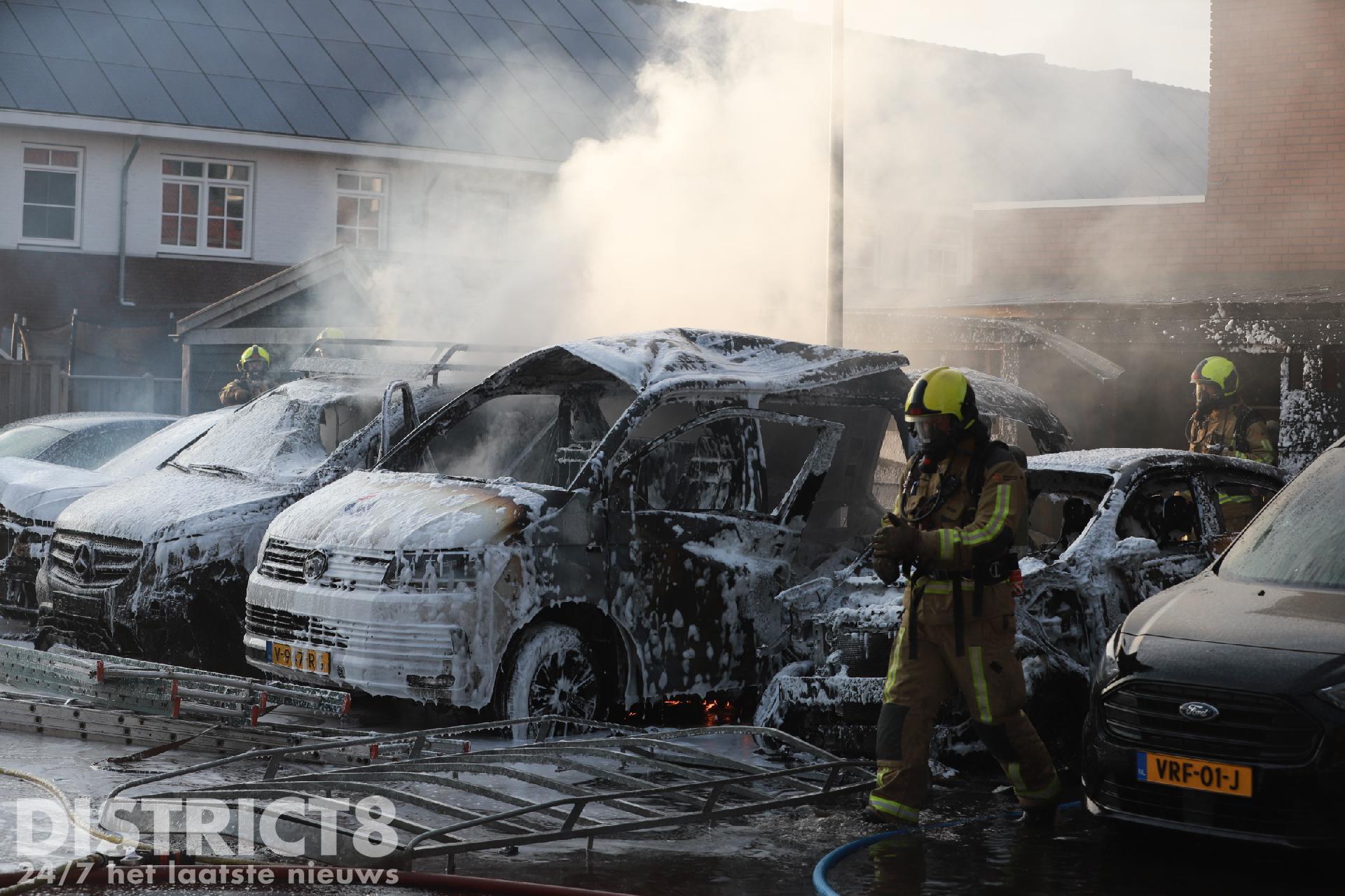 De brandweer is met spoed gealarmeerd. Eenmaal ter plaatse bleek het te gaan om zes voertuigen die in brand stonden. De brandweer schaalde op naar middelbrand en niet veel later naar het sein grote brand. Dit om zo snel mogelijk meer materieel en manschappen ter plaatse te kunnen krijgen om de brand te bestrijden.